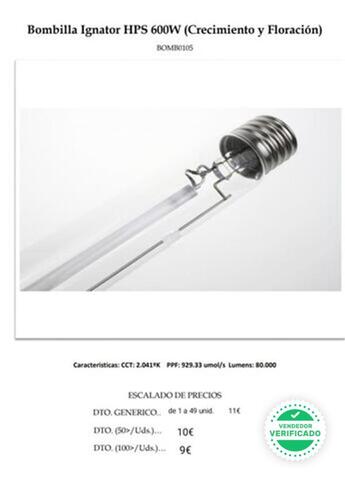 Newlite Adjust 2.0 está equipada con protecciones de tensión y protecciones de la lámpara, si al encender la lámpara está caliente, el sistema esperará unos minutos antes de encenderla automáticamente. Esto protege y alarga la vida útil de la lámpara, evitando un desgaste por encendidos en caliente. Dispone de un conector para su gestión centralizada. Muy útil en instalaciones de mediano o gran tamaño, desde un controlador es posible gestionar el encendido y apagado de todo el grupo de luminarias. Un indicador LED de estado, en 3 colores, ofrece información sobre el estado de la luminaria, errores de encendido, o el fin de vida de la lámpara. Con la luminaria Newlite Adjust 2.0 su cultivo ofrecerá el máximo rendimiento. pedir presupuesto sin compromiso atendemos whassap y telegram maxima discrepcion envios discretos atoda españa facilidad de pagos, maxima calidadd y garantia .El anuncio de ILUMINACION DE CULTIVO 1000W + BOMBILLA se agregó a MilAnuncios.